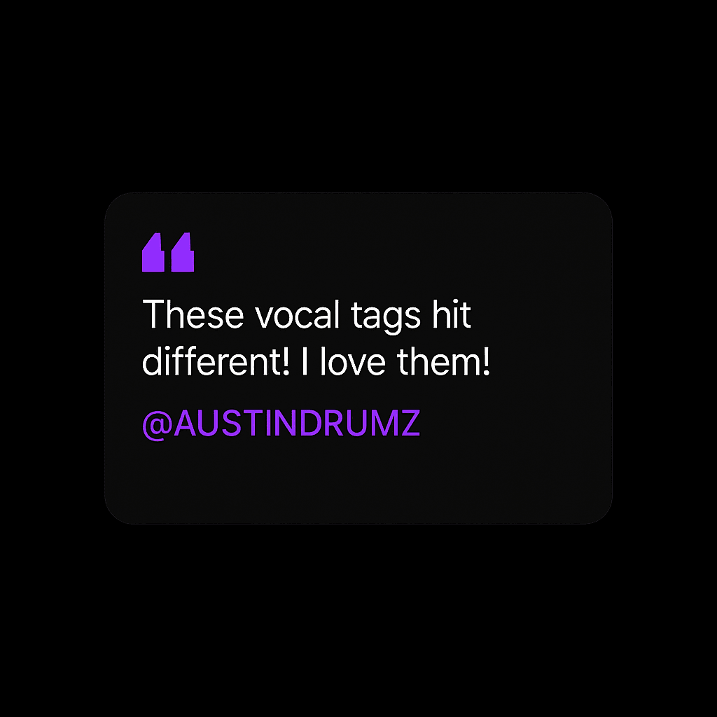 Built for serious producers — 25 voice tags, ready to use instantly.